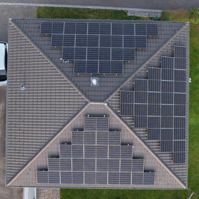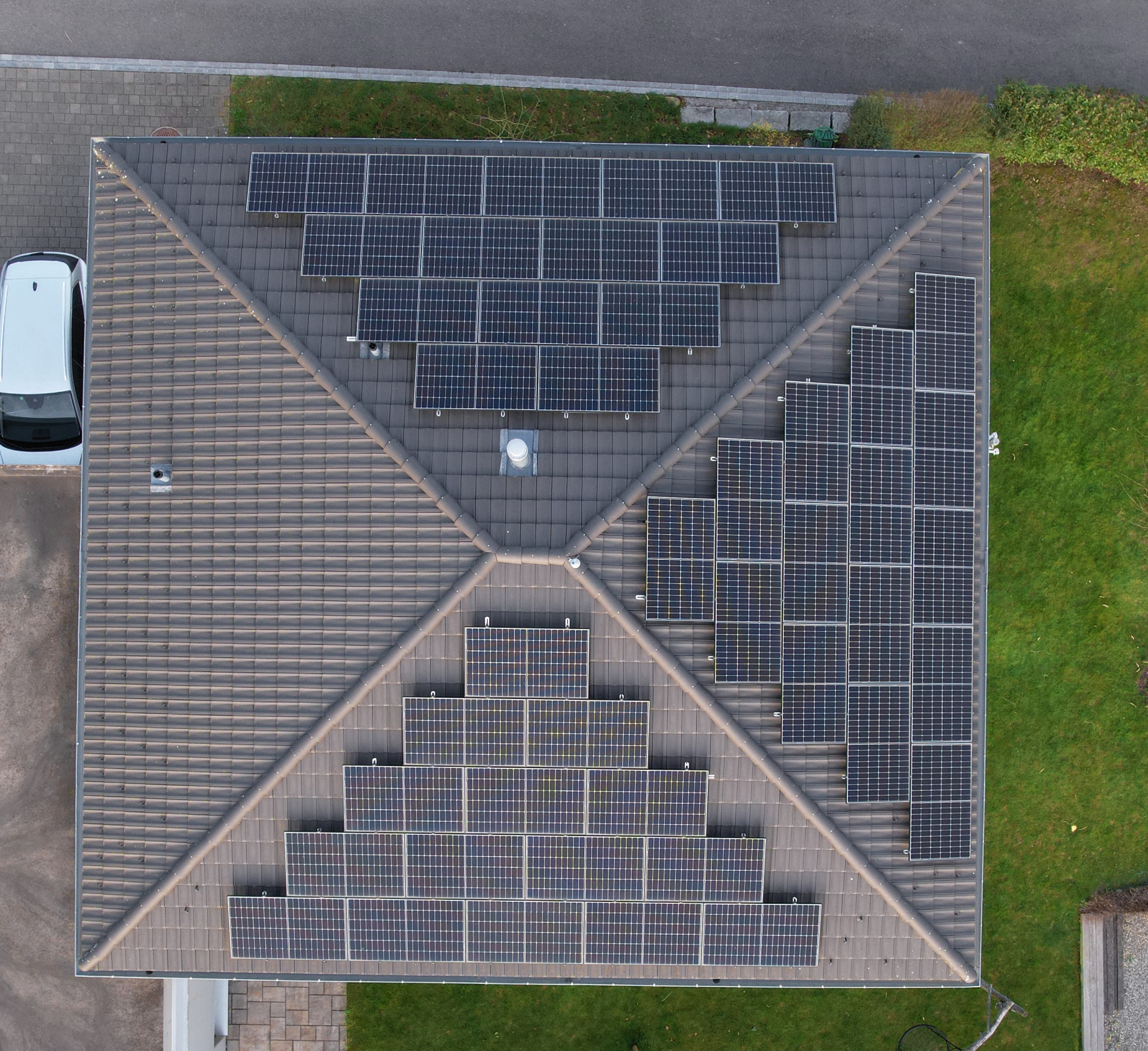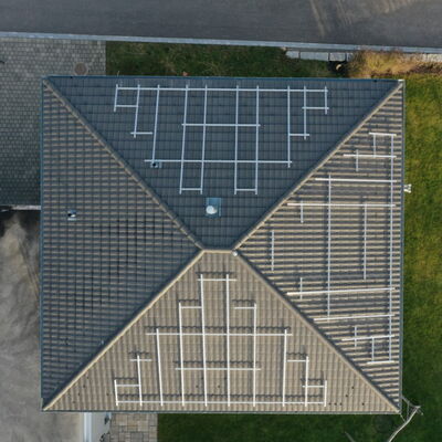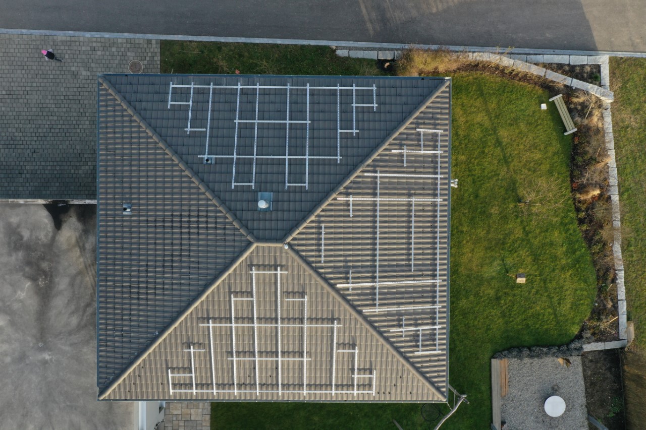 Die versetzte, pyramidenförmige Montage der Solarmodule ermöglicht maximale Erträge. Mit dem Kreuzverbund in der Unterkonstruktion wird eine sehr hohe Sturmfestigkeit erreicht - selbst bei extremen Wetterereignissen.