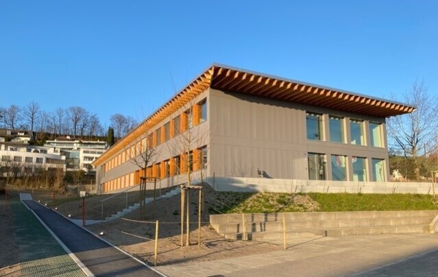 Der Schulpavillon X in Meilen ZH wurde im Holzmodulbau errichtet – ein Pavillon mit elf Klassenzimmern und Nebenräumen. Die Holzmodule waren vorgefertigt und wurden als Rohbau zusammengefügt. Wir durften sämtliche Elektroarbeiten inklusive Lieferung der Lichtanlagen übernehmen und innerhalb von 8 Wochen realisieren. Dies gelang dank exakter Planung, einem straffen Terminplan und einem hochmotivierten Team, das auch bereit war, vor Ort zu übernachten.